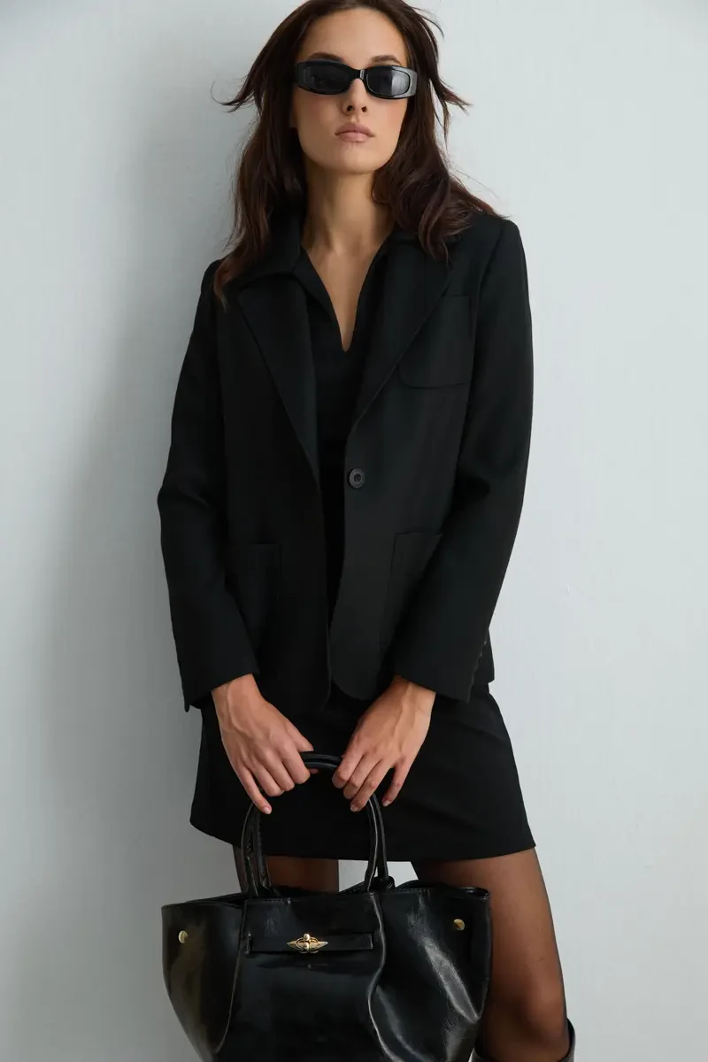 Rugan dokusu parlak ve şık bir görünüm kazandırır. Geniş hacmi günlük eşyalar için yeterlidir. Siyah rengi her stile uyum sağlar. Kullanışlı tasarımı ile konfor sunar. Minimal detayları modern bir dokunuş katar.