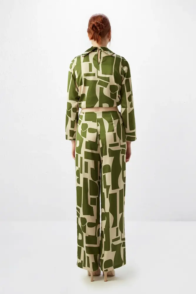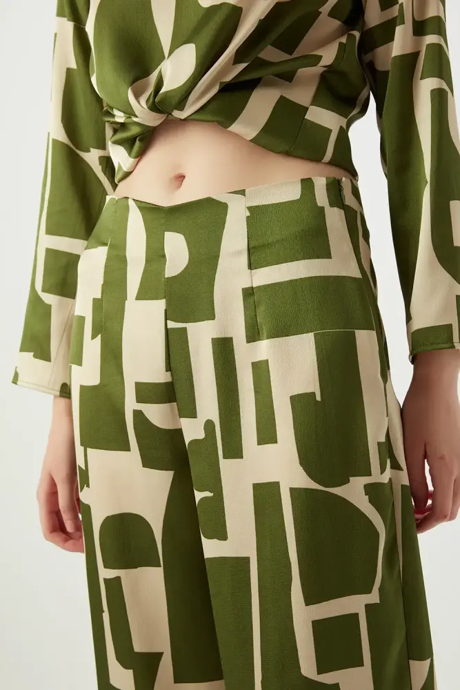 Taş desen detayıyla öne çıkan bu bol paça pantolon, stilinize dinamik ve modern bir hava katar. Yeşil tonunun enerjik ve doğal görünümü, farklı kombinlerle uyum sağlar. Bol paça kesimi sayesinde rahat ve akıcı bir kullanım sunar. Günlük şıklık arayanlar için hem konforlu hem de dikkat çekici bir alternatiftir.