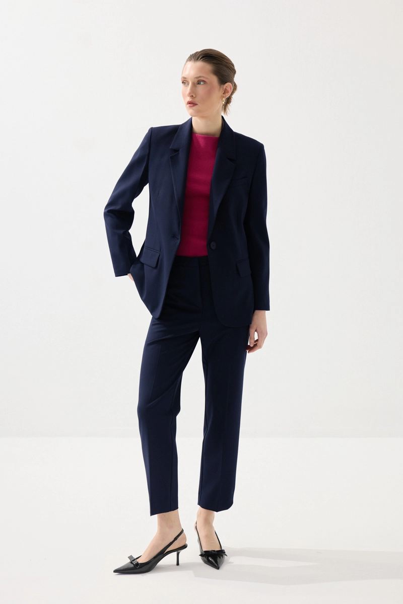 Zamansız kesimiyle şık ve güçlü bir stil sunar. Tek düğmeli tasarımı modern bir görünüm kazandırır. Lacivert tonu klasik kombinlerle mükemmel uyum sağlar. Günlük ve iş stilinde rahatlıkla tercih edilir.