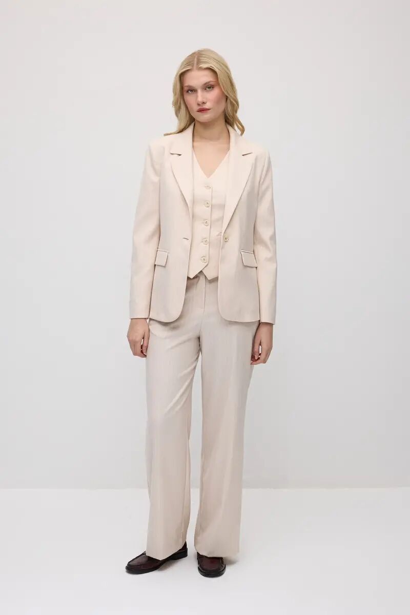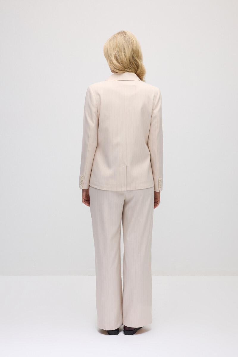 Tek Düğmeli Silik Çizgili Blazer Ceket & Bol Paça Kumaş Pantolon Takım - Pudra