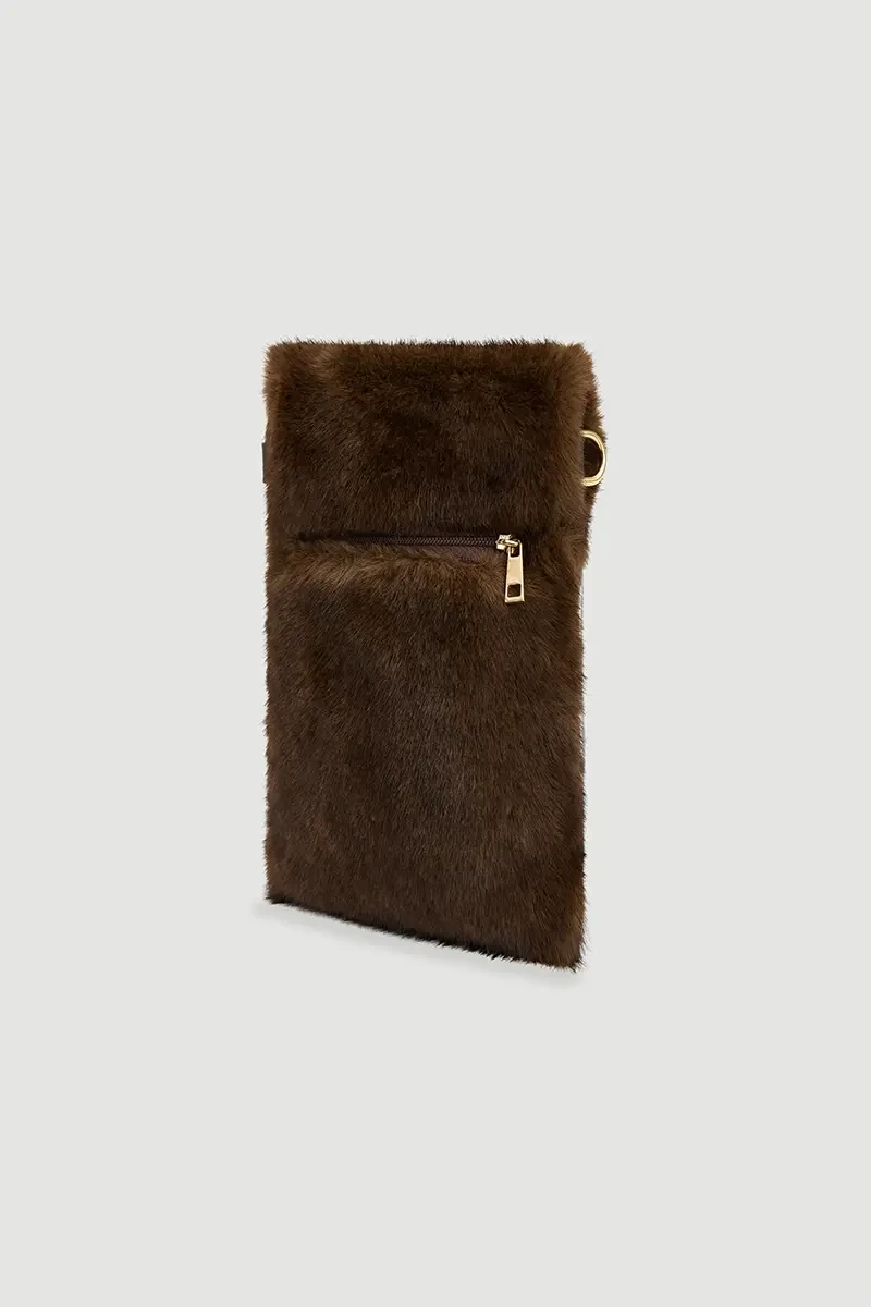 Kahverengi peluş dokusu sıcak ve modern bir görünüm sunuyor. Telefonluk tasarım pratiklik sağlıyor. Günlük kombinlerde rahatlıkla tercih edilebiliyor. Yumuşak yapısı konforlu bir kullanım sunuyor. Minimal ama dikkat çekici bir stil yaratıyor. Günlük şıklığı tamamlayan bir aksesuar oluyor.