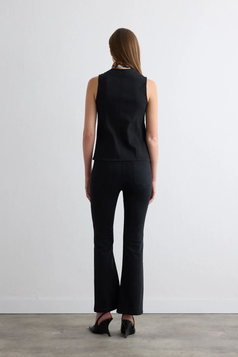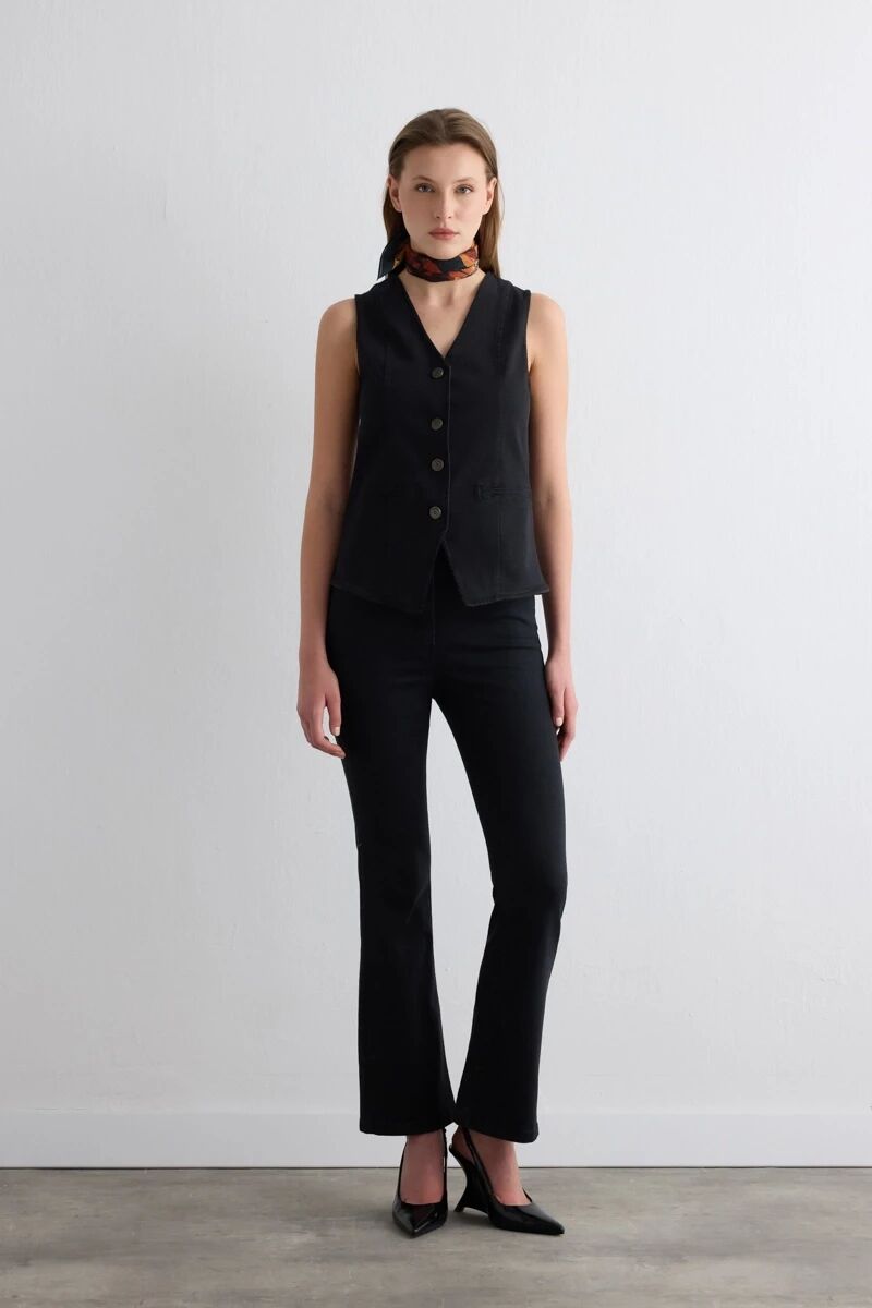 Tencel Denim Black Yelek & Black Flare Pantolon - Siyah Takım