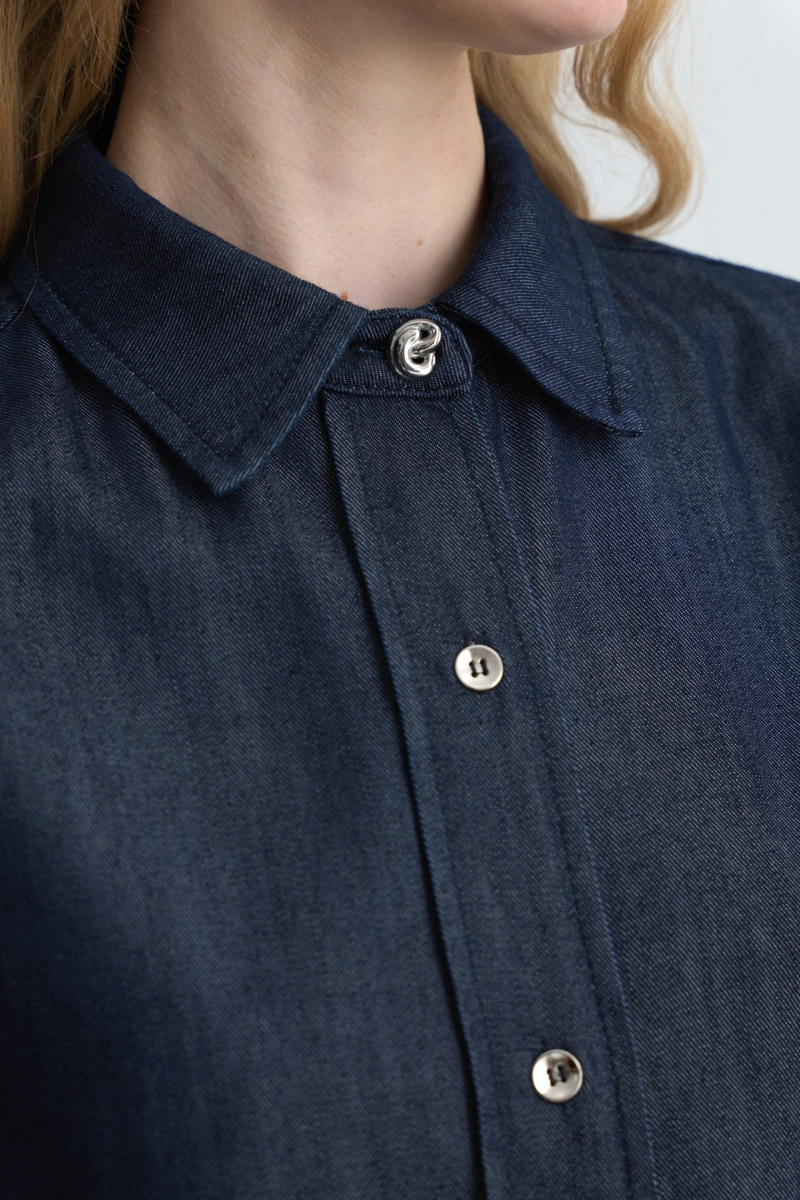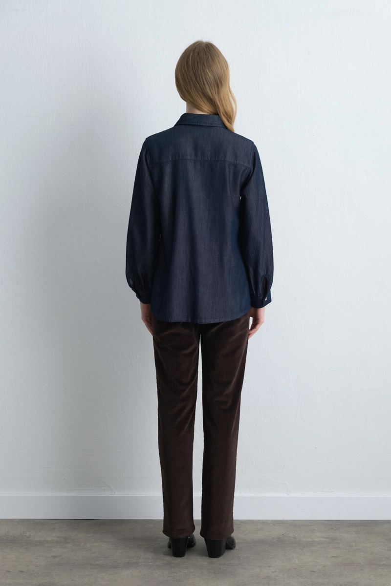 Şık ve rahat bir şehir stiline uygun lacivert denim gömlek, yumuşak tencel dokusuyla konforlu bir kullanım sunar. Günlük kombinlerde pantolon veya eteklerle rahatlıkla eşleştirilebilir. Zamansız tasarımı sayesinde gardırobunuzun çok yönlü parçalarından biri olur.