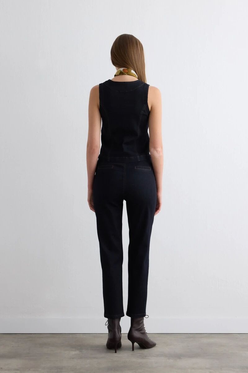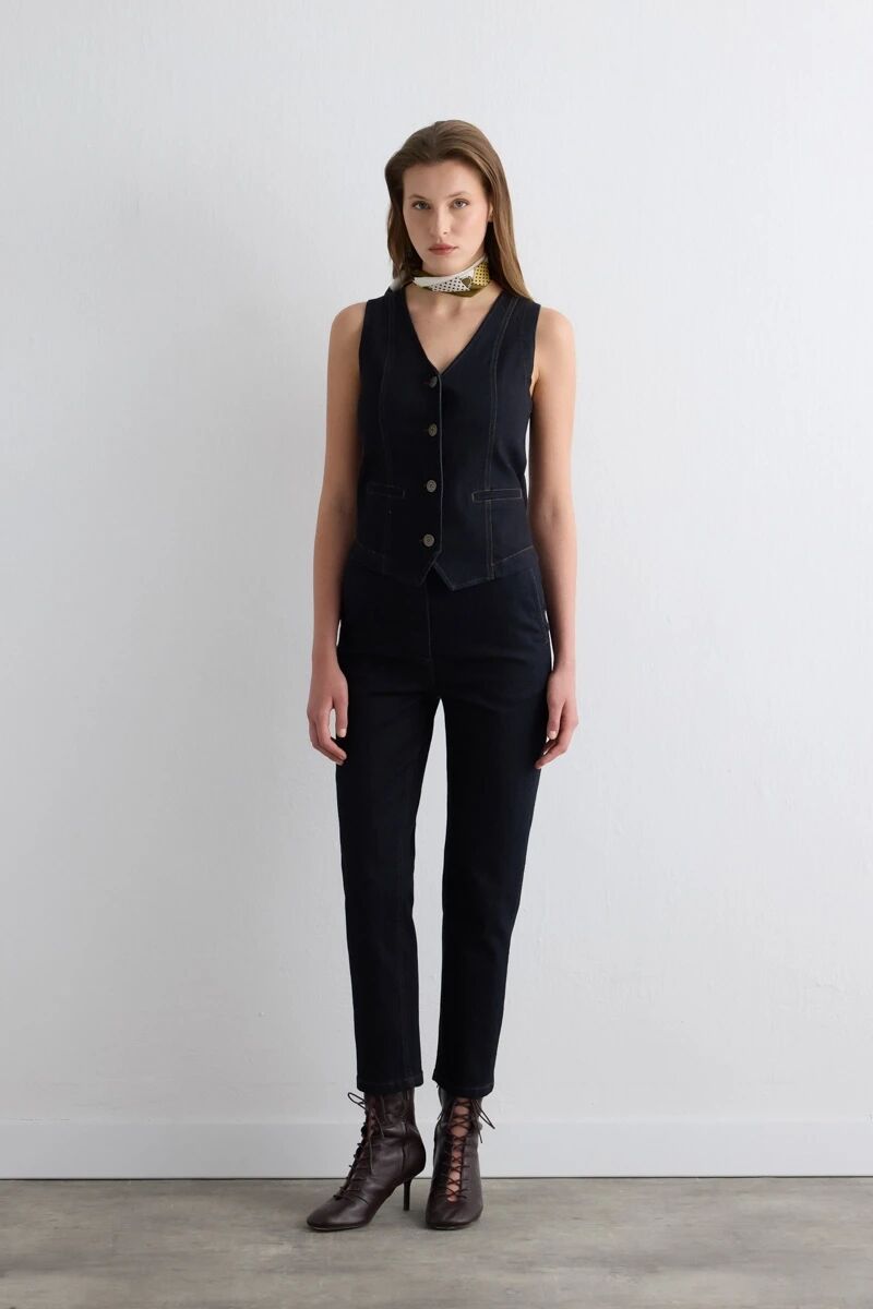 Tencel Denim Yelek & Mom Pantolon - Lacivert Takım