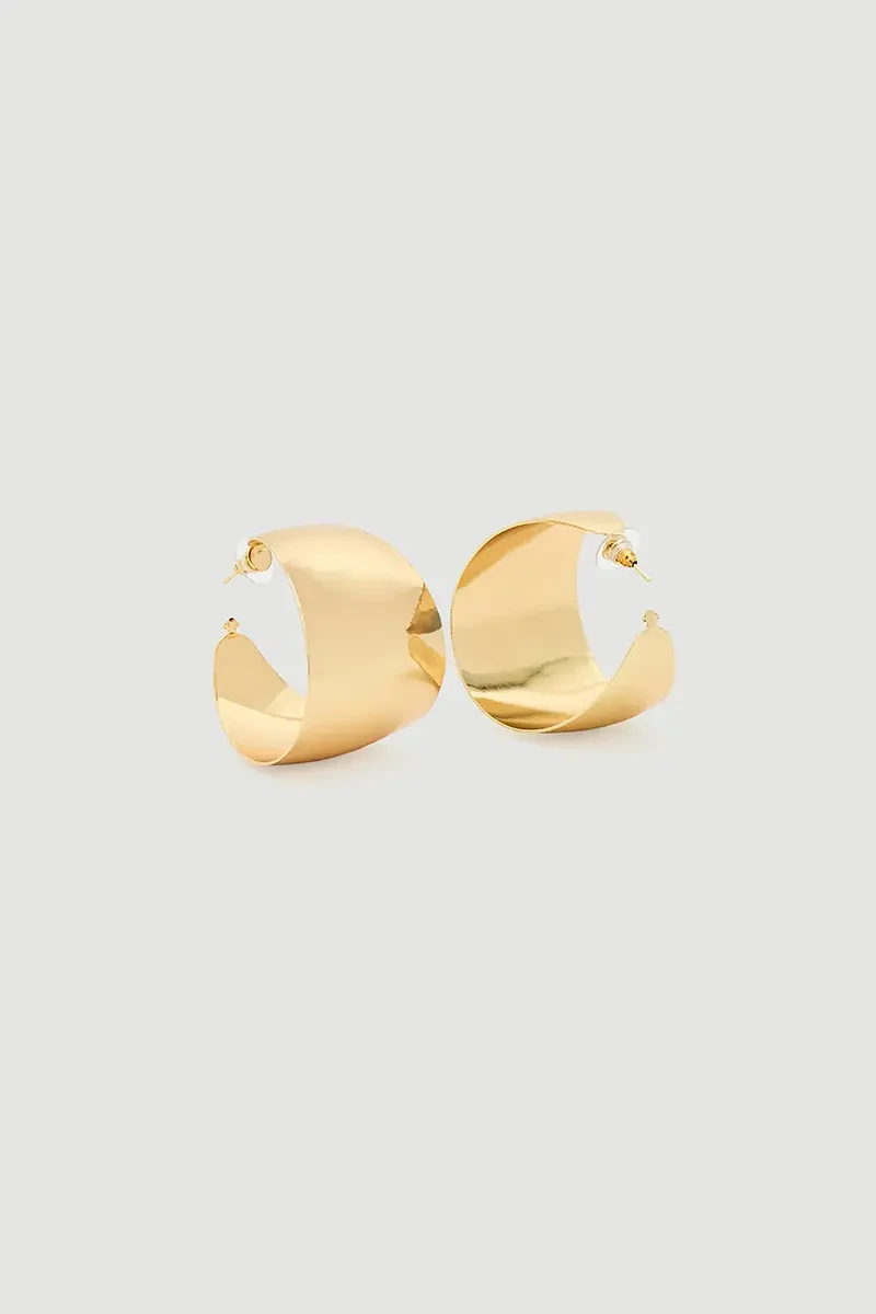 Gold color highlights elegance and sophistication. Its thick hoop design provides a modern and eye-catching detail. Creates a minimal and bold style. Stands out as an accessory completing your style in daily and special outfits. Its elegant design enhances every look.