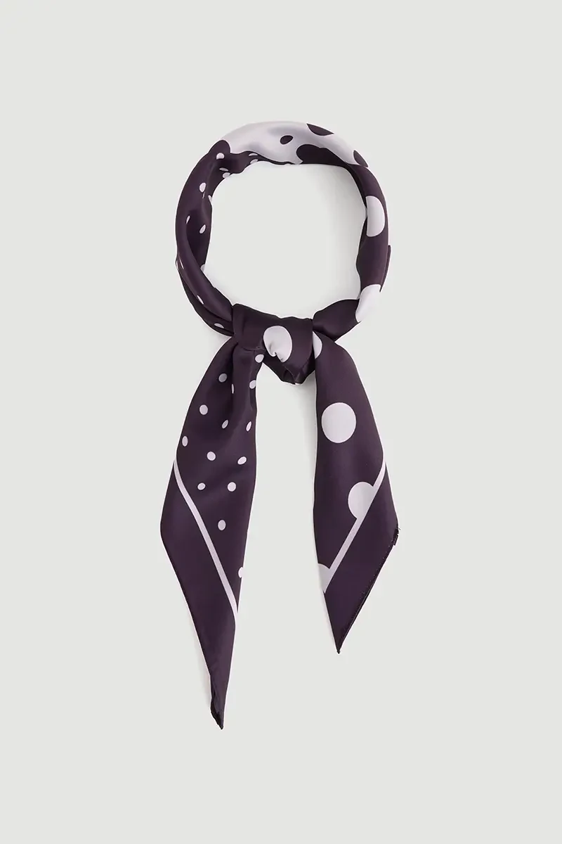 This scarf, in a plum color with dual-tone polka dot details, completes minimal and stylish outfits. Its soft and flexible texture allows comfortable use with various tying styles. A vibrant and elegant accessory for your wardrobe.