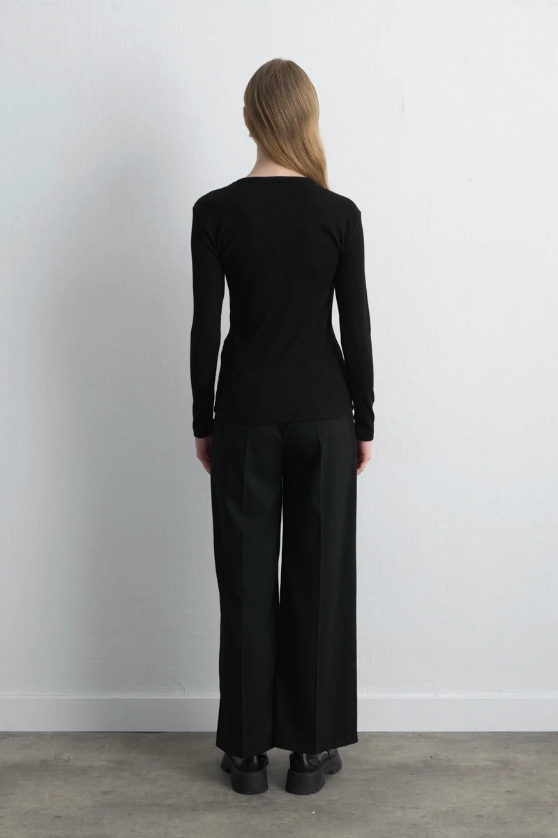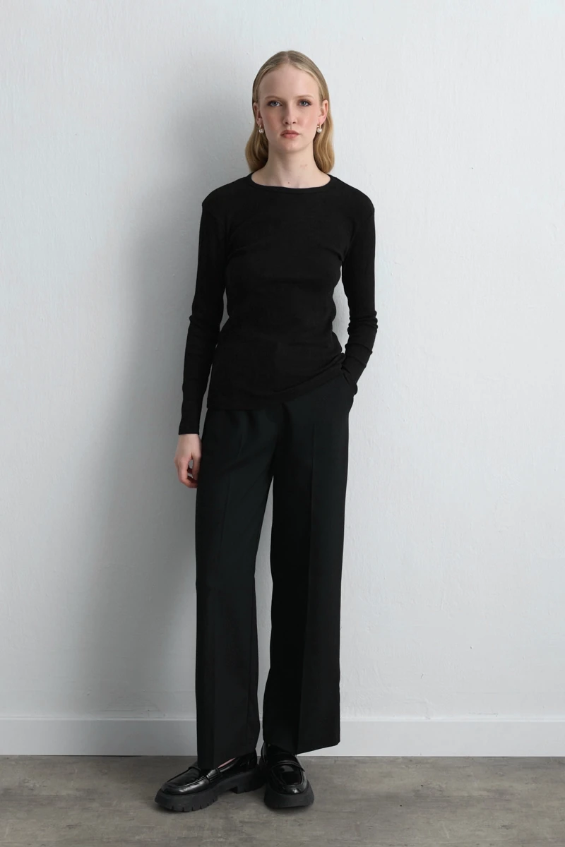 Zamansız ve çok yönlü bir parçadır. Yumuşak pamuk kumaşı sayesinde gün boyu konfor sunar. Sade tasarımıyla tek başına ya da ceket, hırka gibi parçalarla rahatlıkla kombinlenebilir. Her mevsim gardırobun temel parçalarından biri olmaya uygundur.