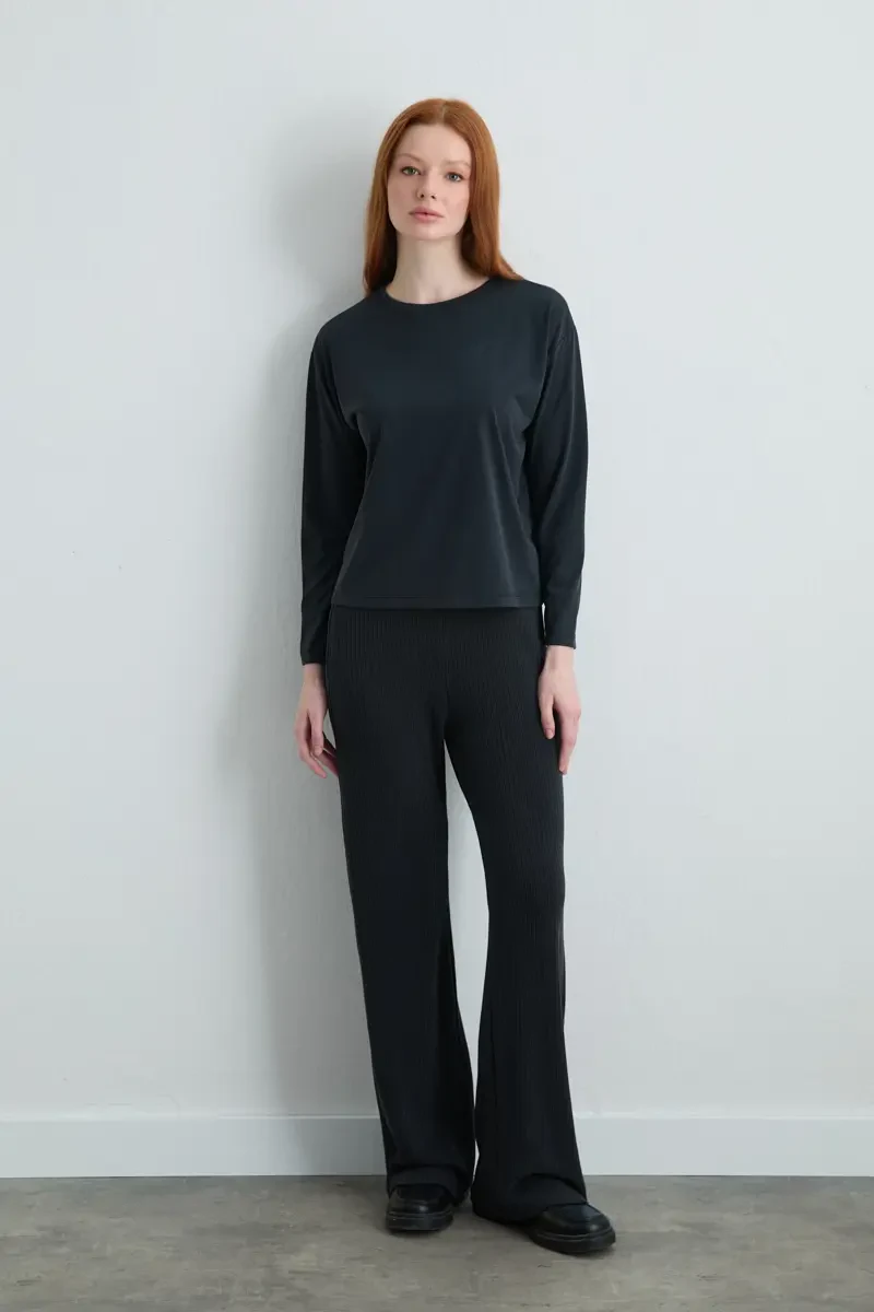 Modal kumaşı sayesinde yumuşak ve esnek bir kullanım sunan bluz, siyah rengiyle her kombine uyum sağlar. Uzun kollu tasarımı, hem rahat hem de şık bir görünüm yaratır. Casual ve ofis stillerinde stilinizi tamamlayacak ideal bir parçadır.