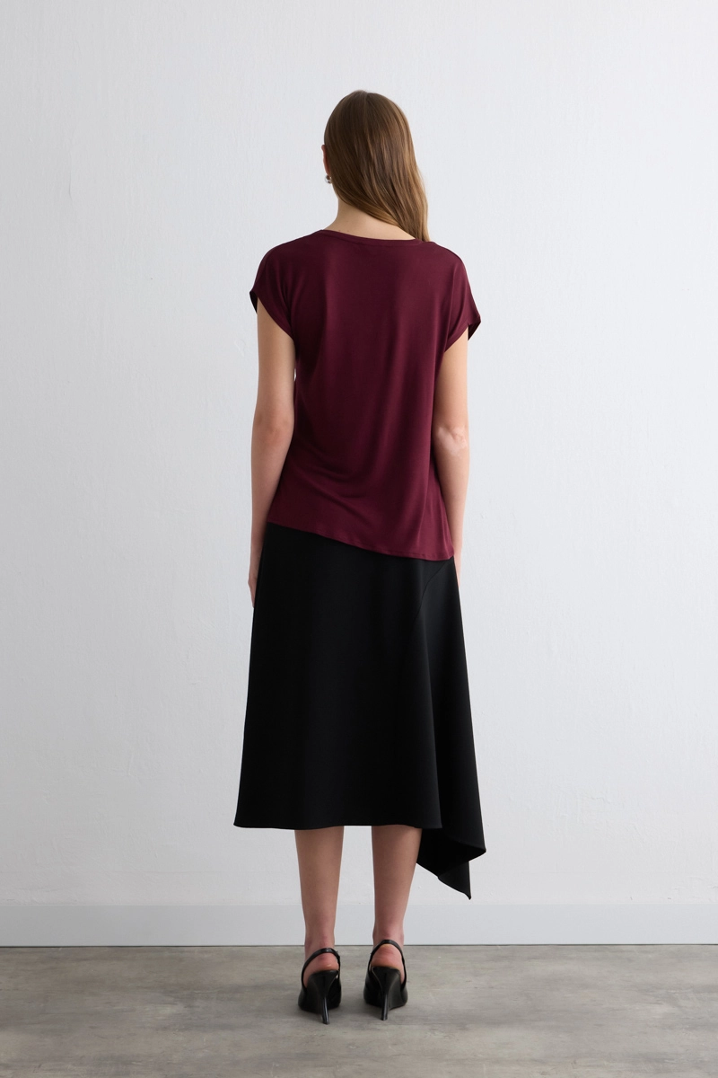 Parlak ön yüzeyiyle modern bir görünüm kazanır. V yaka formu feminen bir duruş sunar. Bordo tonu sofistike kombinler için idealdir. Yumuşak dokusu gün boyu konfor sağlar. Hem spor hem şık parçalarla kolayca uyum sağlar.