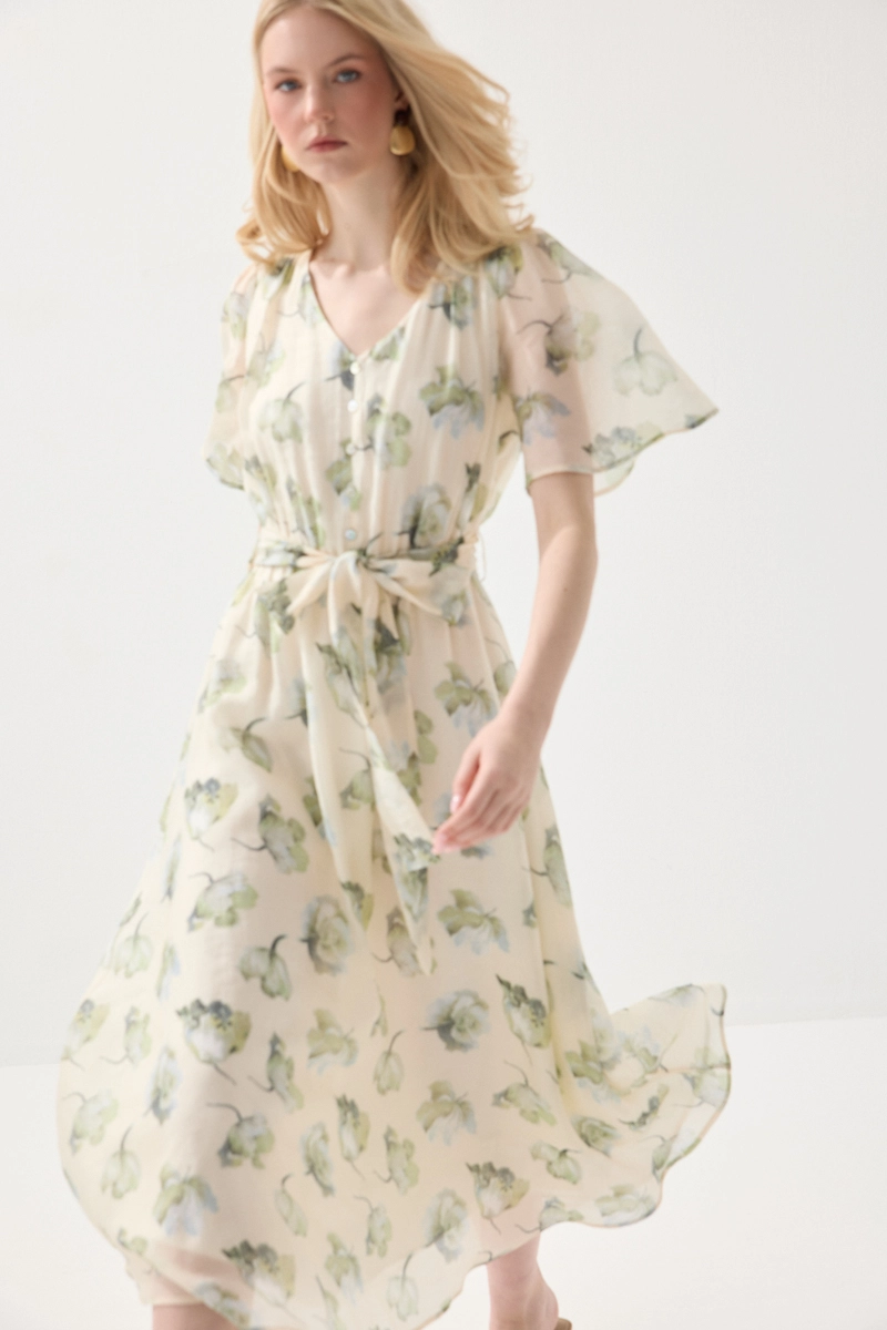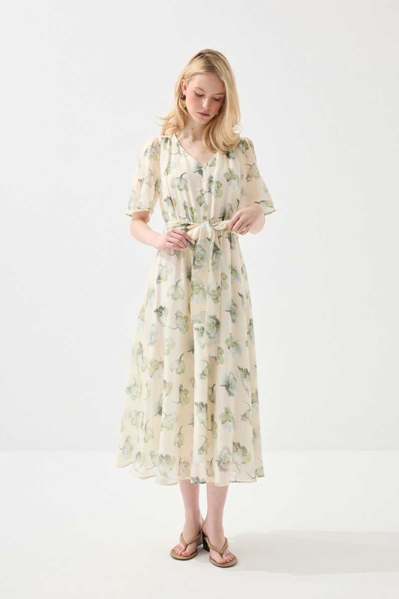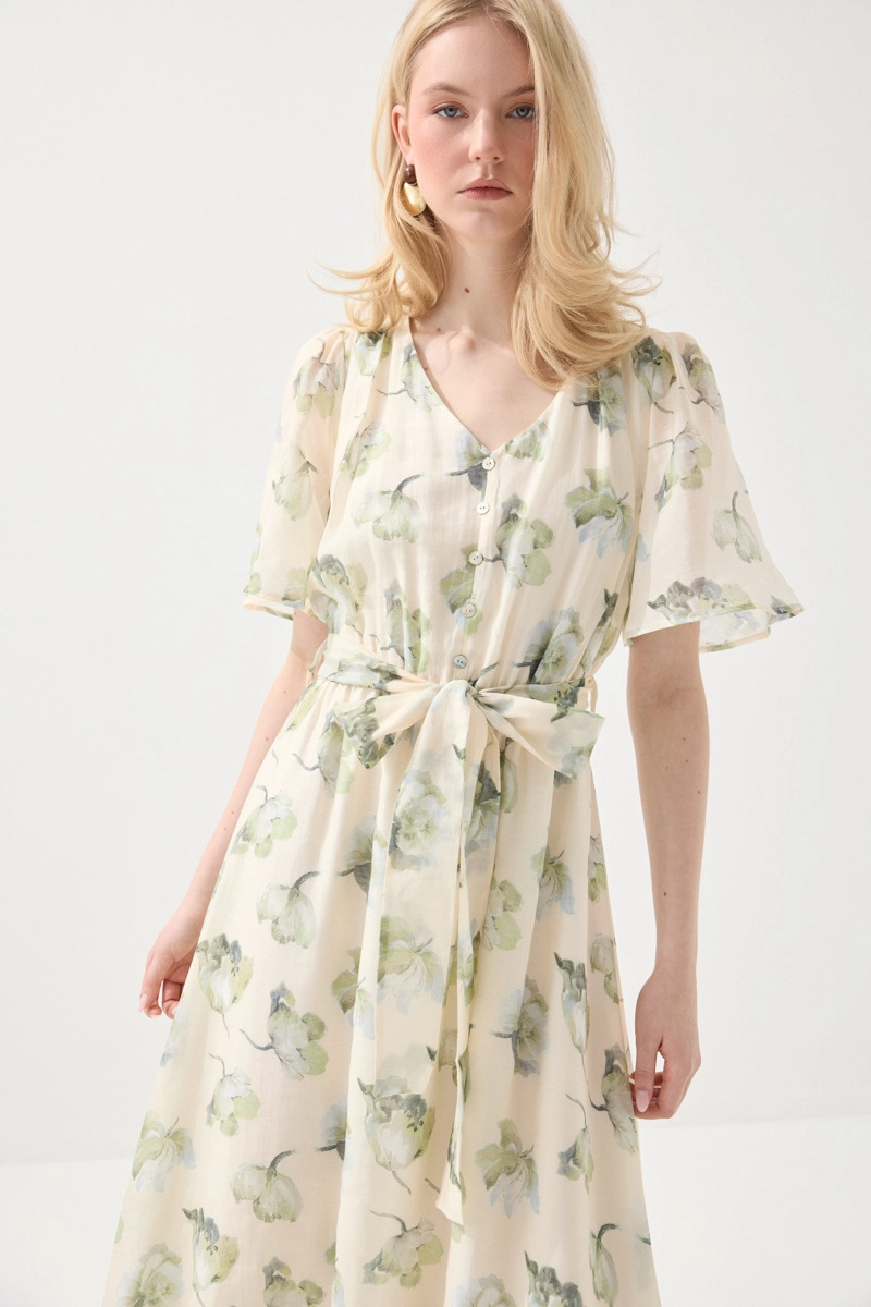 Desenli yapısı ve V yaka detayıyla zarif bir görünüm sunan bu uzun tencel elbise, akıcı dokusuyla gün boyu konfor sağlar. Hafif ve nefes alabilen yapısı sayesinde ferah bir kullanım sunar. Modern kesimi ile feminen bir siluet oluşturur. Günlük ve şık davetlerde rahatlıkla tercih edilebilir. Stilinize doğal ve şık bir dokunuş katar.