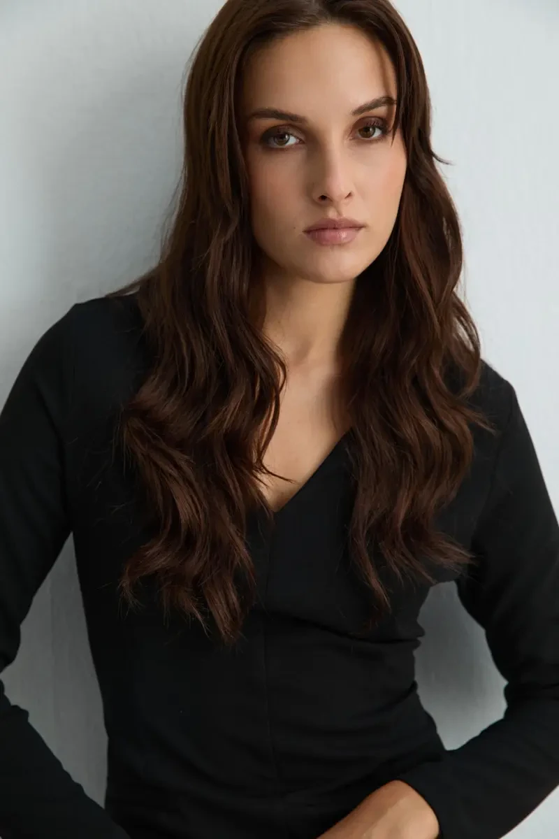 The black long dress, highlighted by its V-neckline that offers an elegant décolleté, creates a flawless fit with its lycra-blend stretch fabric. With its fluid form and simple lines, it provides a striking look for evening events or special occasions.