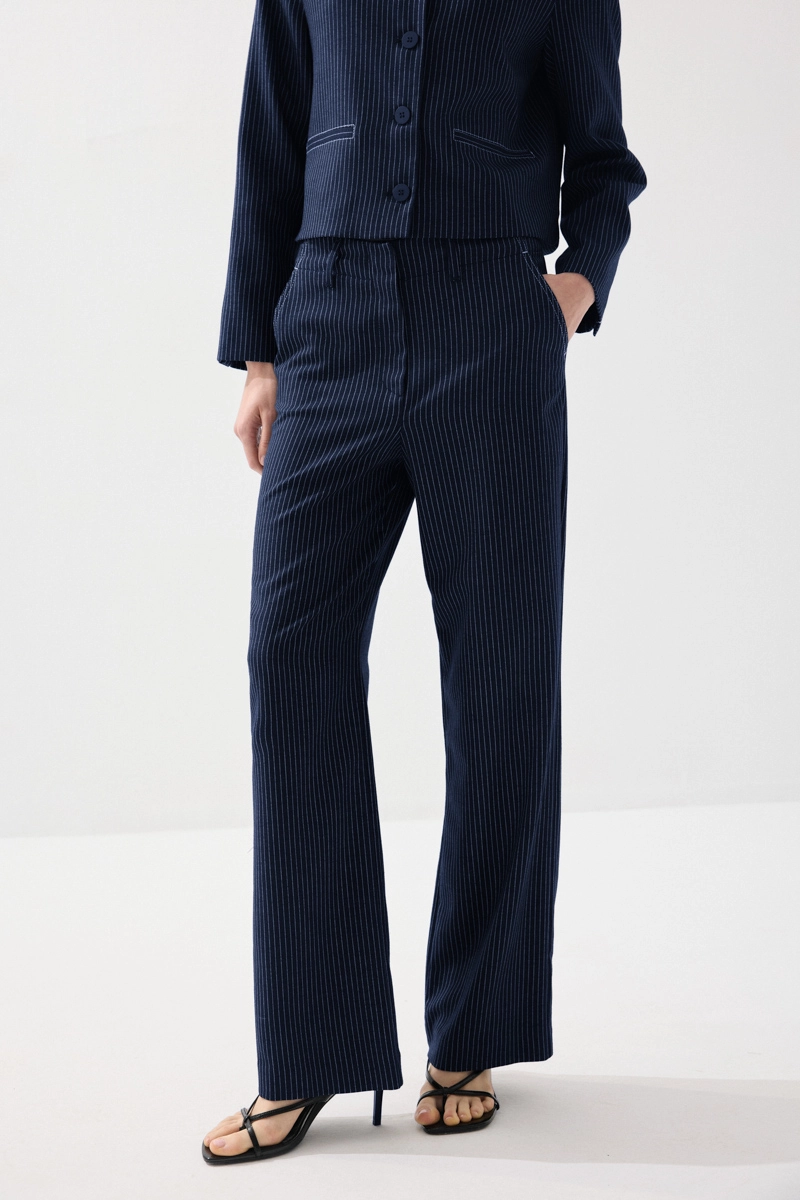 Viskon ve keten karışımlı kumaşıyla hafif ve ferah bir kullanım sunan bu çizgili pantolon, modern görünümüyle dikkat çeker. Nefes alabilen yapısı sayesinde sıcak havalarda konfor sağlar. Rahat kesimi ile gün boyu hareket özgürlüğü sunar. Günlük ve şık kombinlere kolayca uyum sağlar. Zarif çizgileri ile stilinize dinamizm katar.