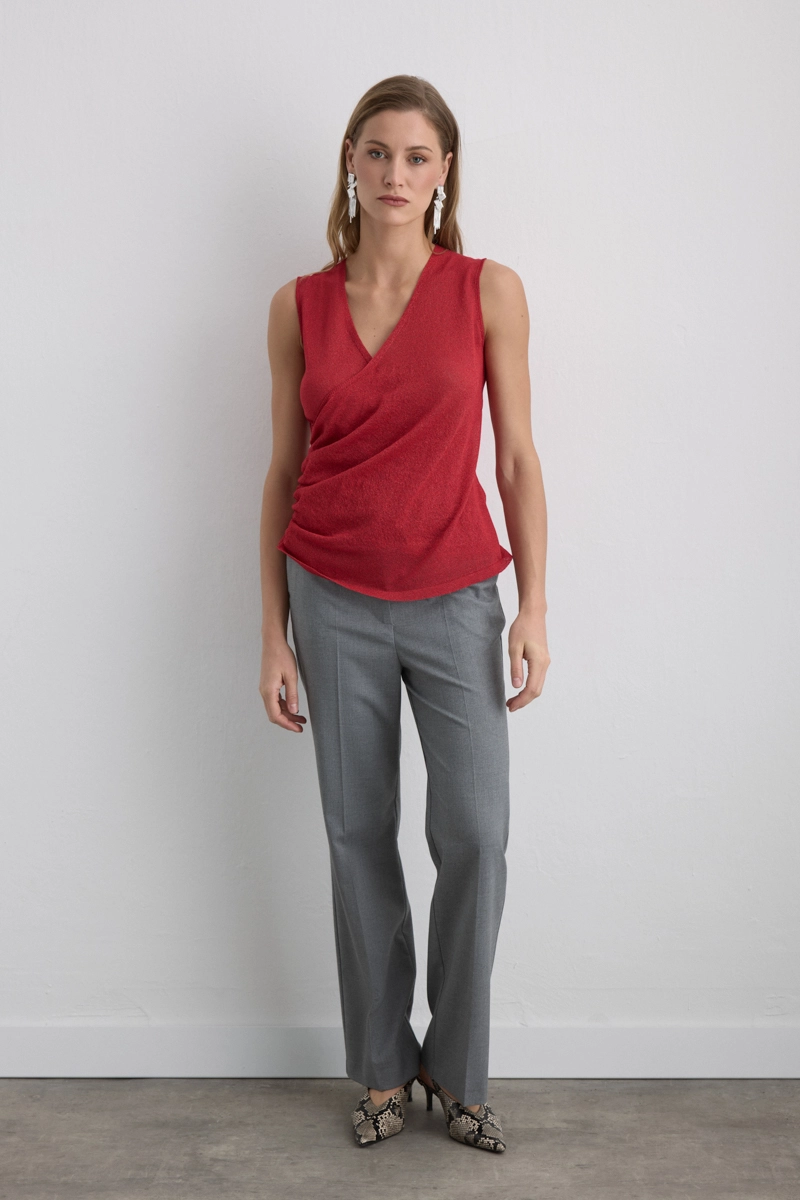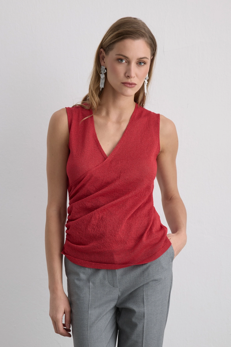 Canlı rengi ve simli dokusuyla enerjik bir ışıltı sunuyor. Viskon triko yapısı yumuşak bir dokunuş ve esnek kullanım rahatlığı sağlıyor. Geceden gündüze geçişte dikkat çekici bir alternatif oluşturuyor.