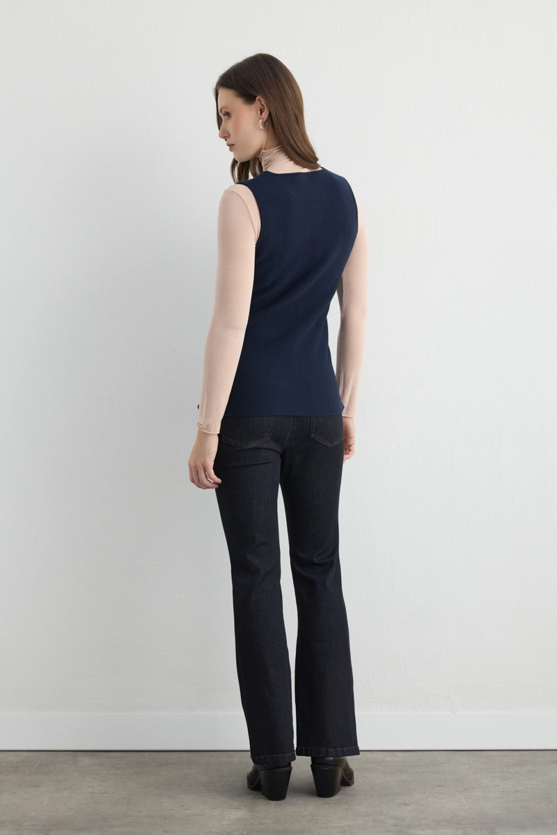 Lacivert rengiyle zarif bir görünüm sunan viskon triko yelek, modern kesimiyle farklı kombinlerin tamamlayıcısı oluyor. Hem bluzlar hem de gömleklerle uyum sağlayan bu model, mevsim geçişlerinde şıklığıyla ön plana çıkıyor. Yumuşak dokusu ve rahat kalıbıyla gün boyu konfor sunan triko yelek, gardırobunuzda farklı tarzlara kolayca uyum sağlayacak çok yönlü bir parça.