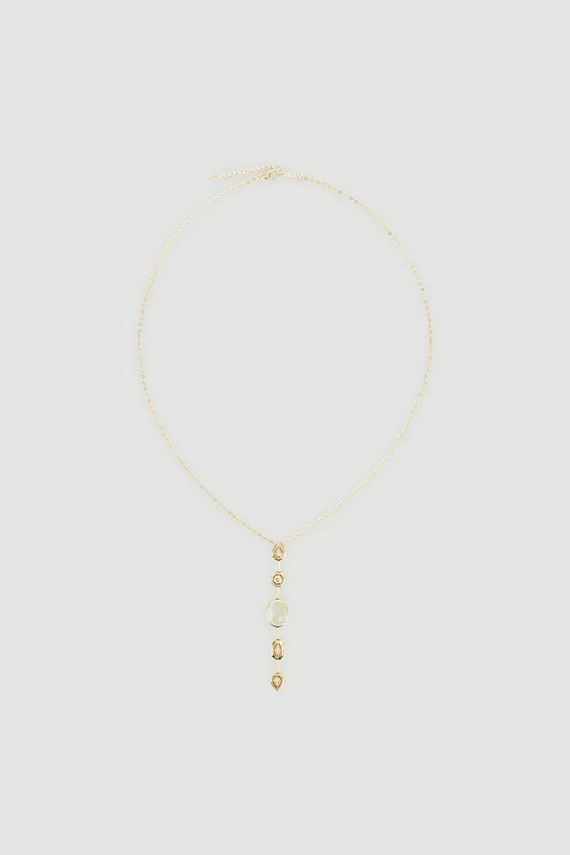White stone details placed on a gold-plated chain provide a refined and sophisticated appearance. Minimal yet striking design can be combined with various outfits to elevate your style. Stands out as an accessory for both day and evening wear.