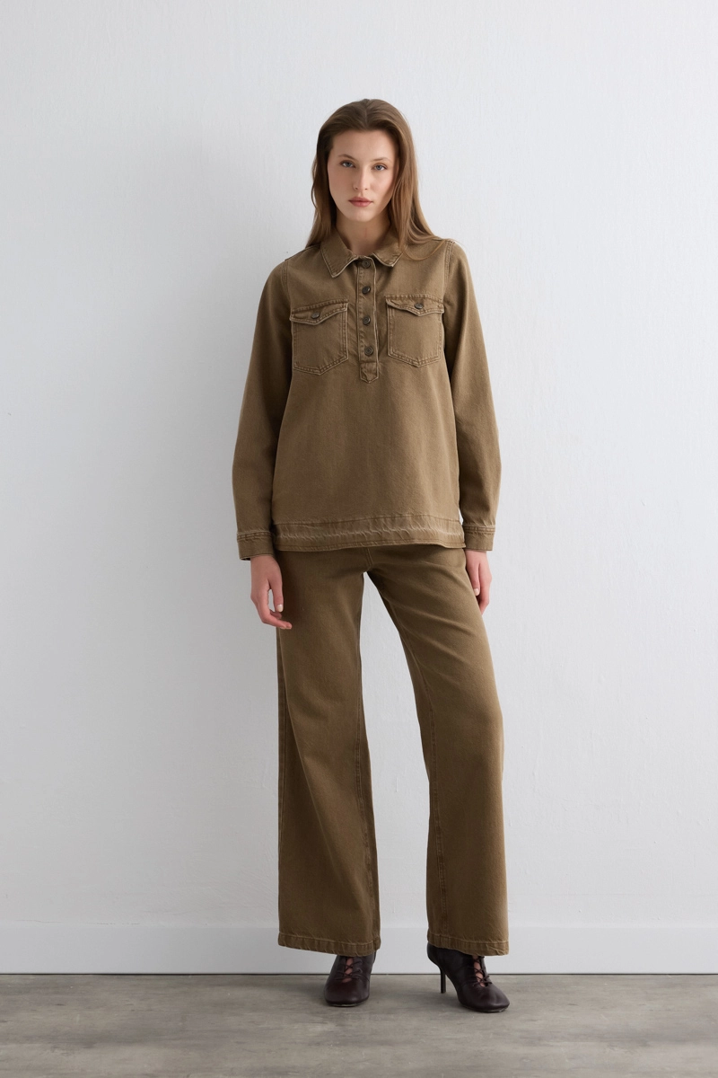 Rahat kalıbı sayesinde özgür bir hareket alanı sunar. Geniş paça tasarımıyla modern bir görünüm kazandırır. Doğal tonu farklı üst parçalarla kolayca uyum sağlar. Günlük şıklığı konforla buluşturur. Hem spor ayakkabılar hem topuklularla kombinlenebilir.