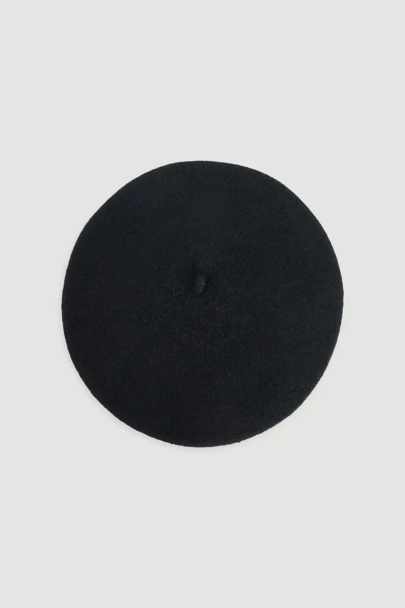 With its black color, it matches any outfit. The soft wool texture keeps the head warm and provides comfort. The beret style adds a modern and stylish touch. Its minimal design stands out in daily and urban looks. It is a comfortable accessory that completes your style in cold weather.