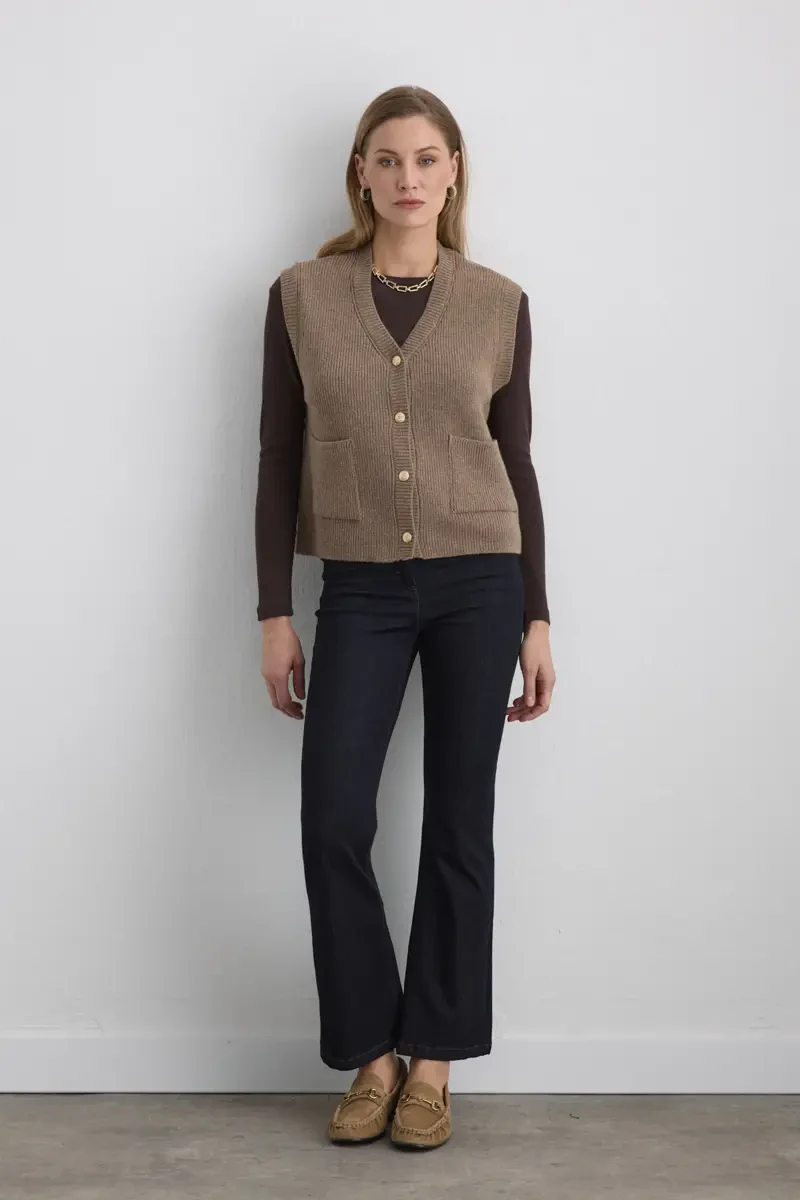 The neutral tone pairs easily with any color. The thick knit provides warmth, while the simple form complements everyday chic. A practical layering option for transitional seasons.