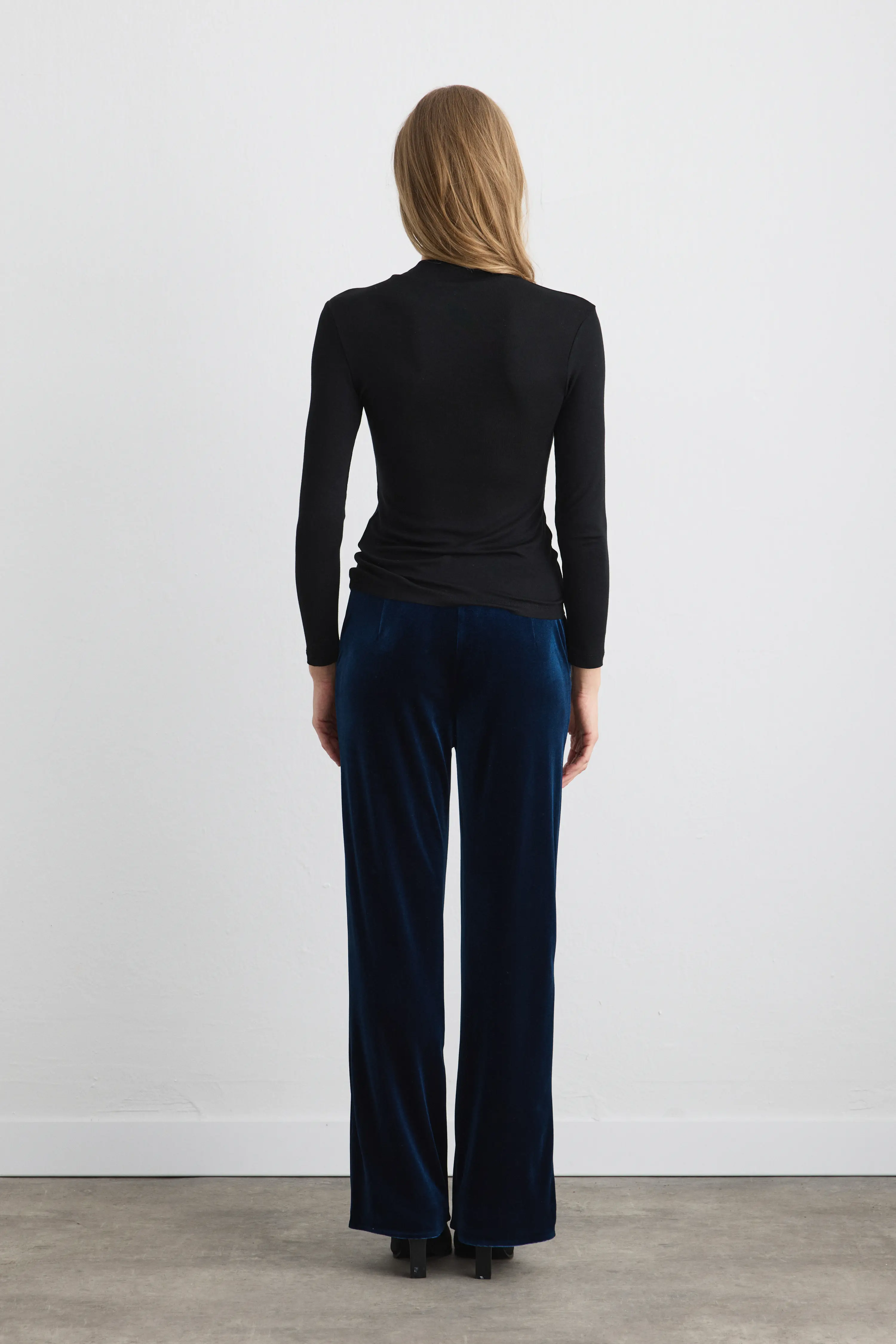 Featuring an elegant knot detail for a feminine look, this design offers flexibility and comfort with its soft viscose-lycra blend. Its shiny surface easily transitions from day to night. Minimal accessories create a simple yet impressive appearance.