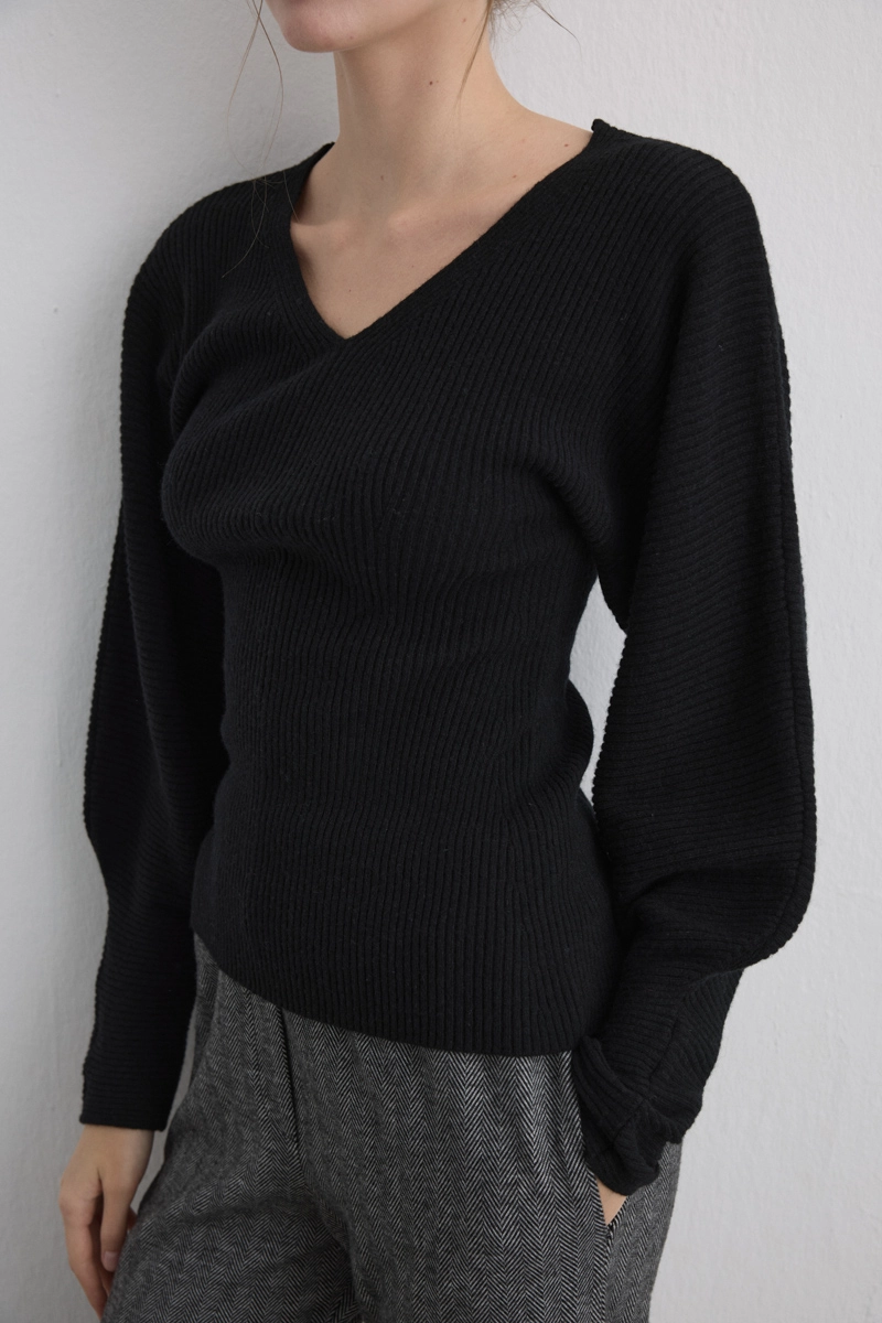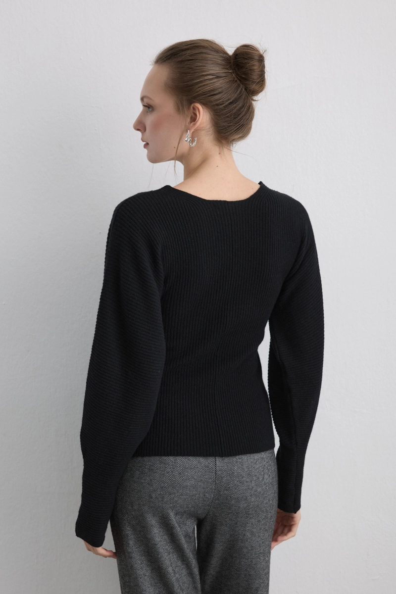 Yarasa Kol Yünlü Triko - Siyah