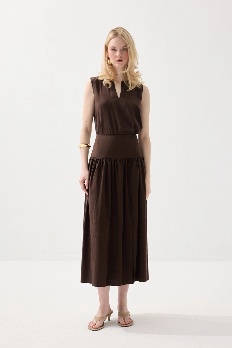 Yırtmaç detayıyla hareket kazanan bu uzun tencel etek, akıcı yapısıyla zarif bir görünüm sunar. Hafif ve nefes alabilen kumaşı sayesinde gün boyu konfor sağlar. Modern kesimi ile feminen bir siluet oluşturur. Günlük ve şık kombinlerde rahatlıkla tercih edilebilir. Stilinize zarif bir dokunuş katar.