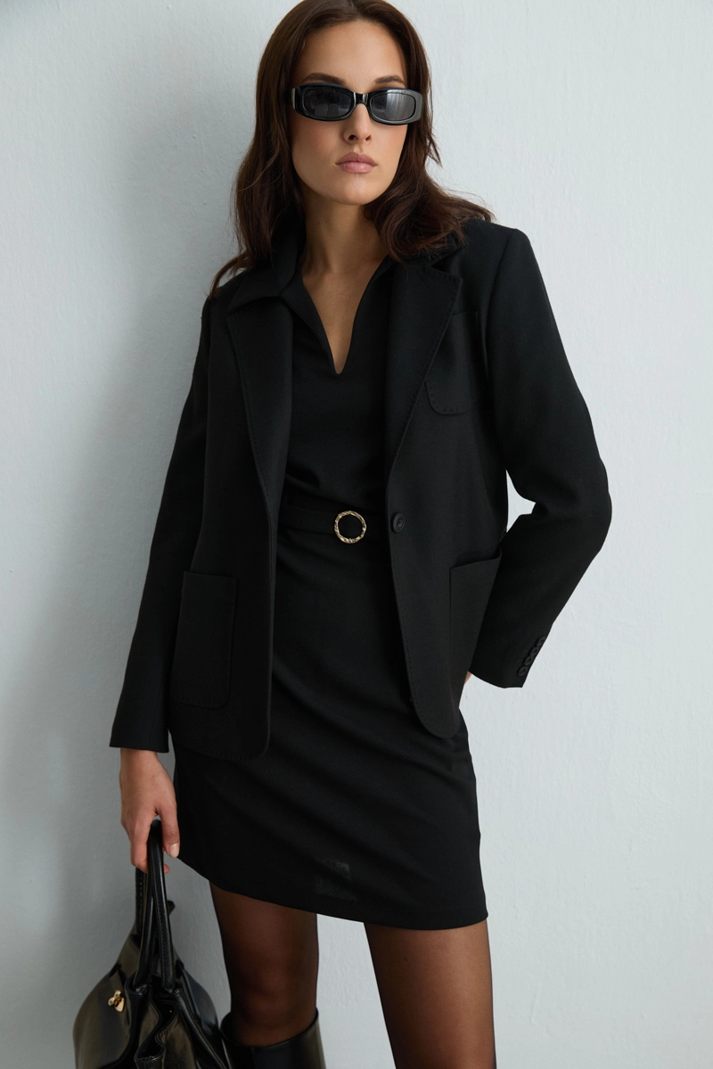 A symbol of classic elegance, the black wool blazer jacket is a timeless piece every wardrobe should have. Its wool-blend texture provides warmth, while the tailored fit creates a sleek silhouette. From office outfits to city chic looks, it offers versatile styling options.