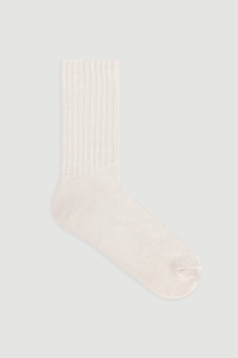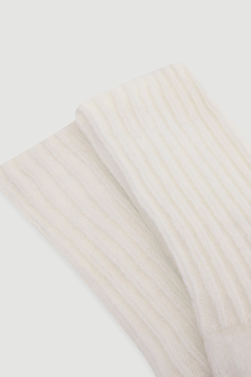 Ecru wool socks are a basic piece providing warmth and comfort in cold weather. Soft texture comfortably wraps the feet for all-day wear. Light ecru color pairs well with different outfits and adds an elegant touch. Durable material ensures long-lasting use. Practical and stylish for both home and outdoor wear.