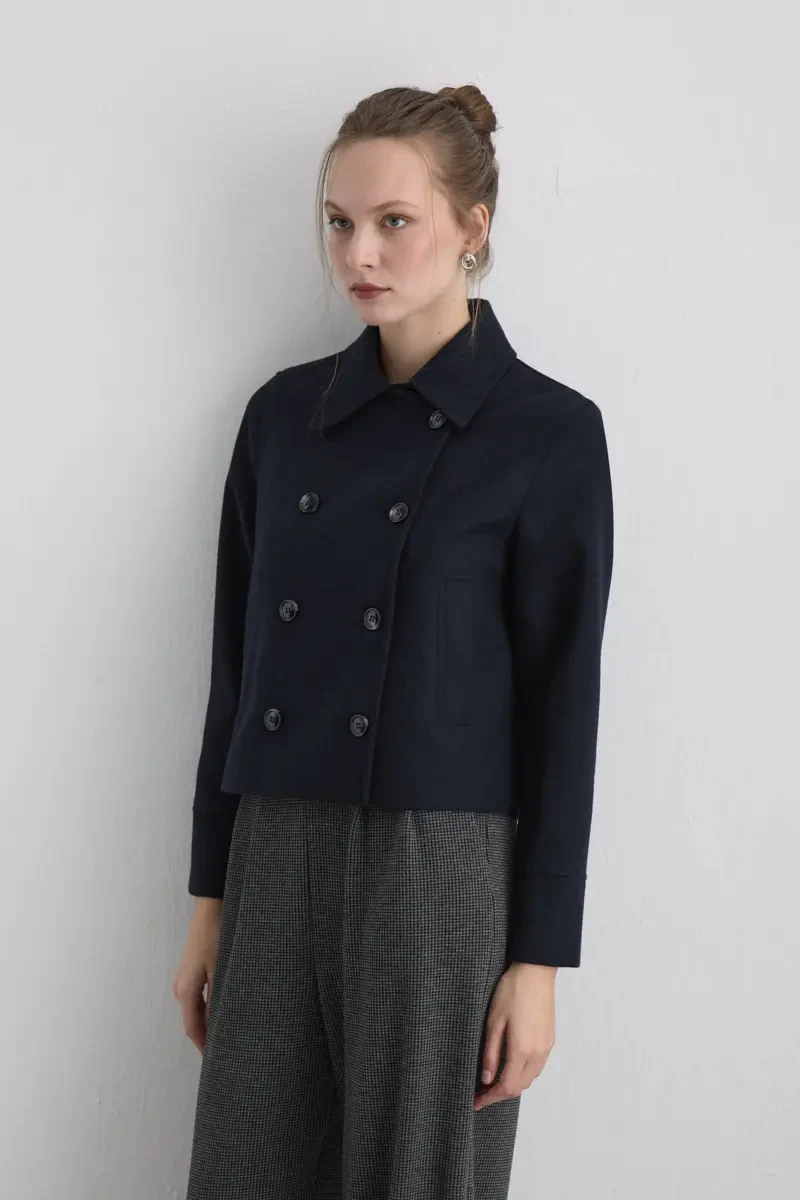 Kalın dokusu sayesinde mevsim geçişlerinde sıcak tutarken, klasik lacivert tonu sofistike bir görünüm kazandırıyor. Klasik kalıbı ve zarif duruşuyla ofis stilinin güçlü tamamlayıcısı. Şıklık ve konforu bir araya getiren zamansız bir parça.