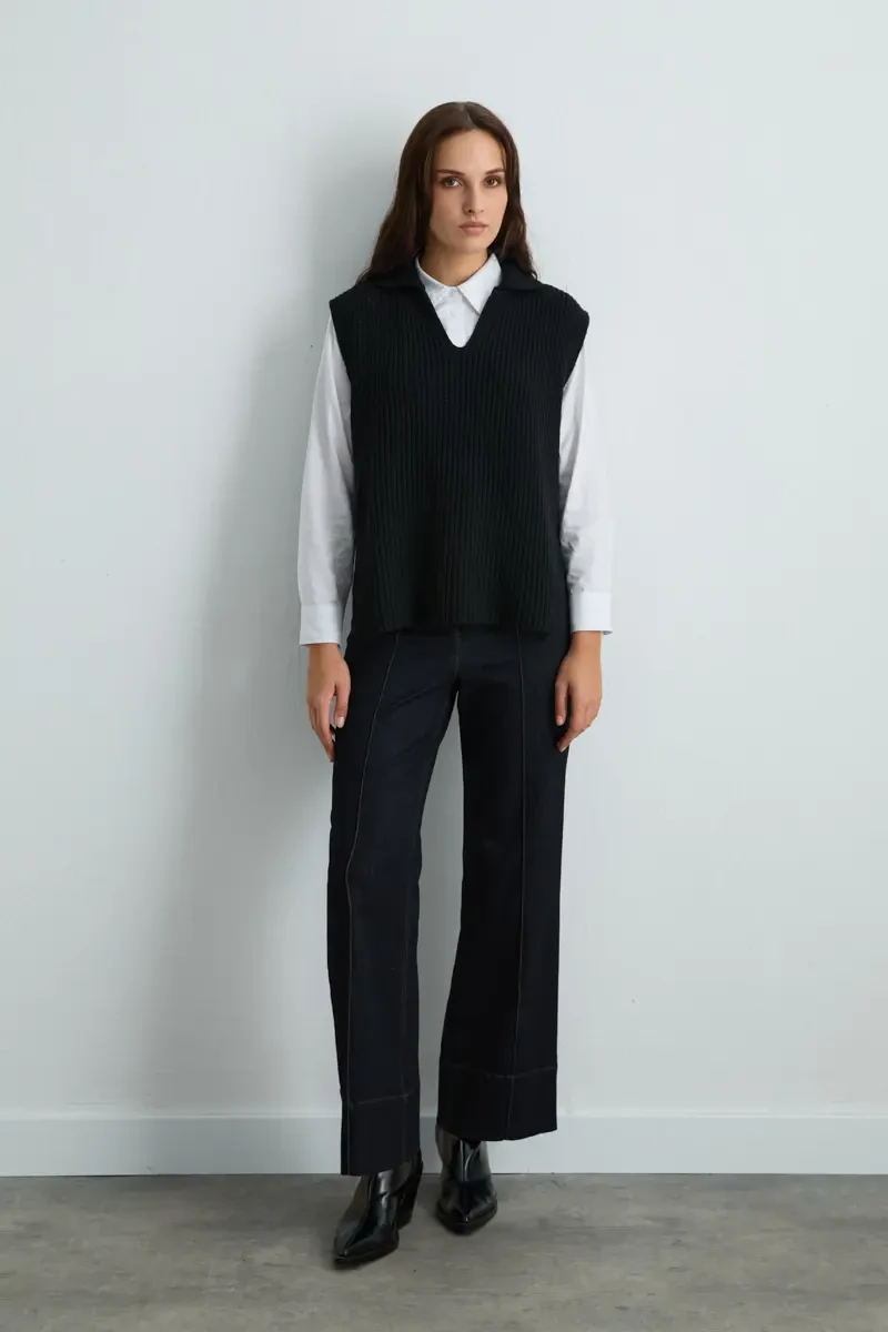 Wool Knit Vest - Black