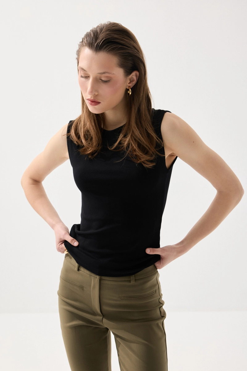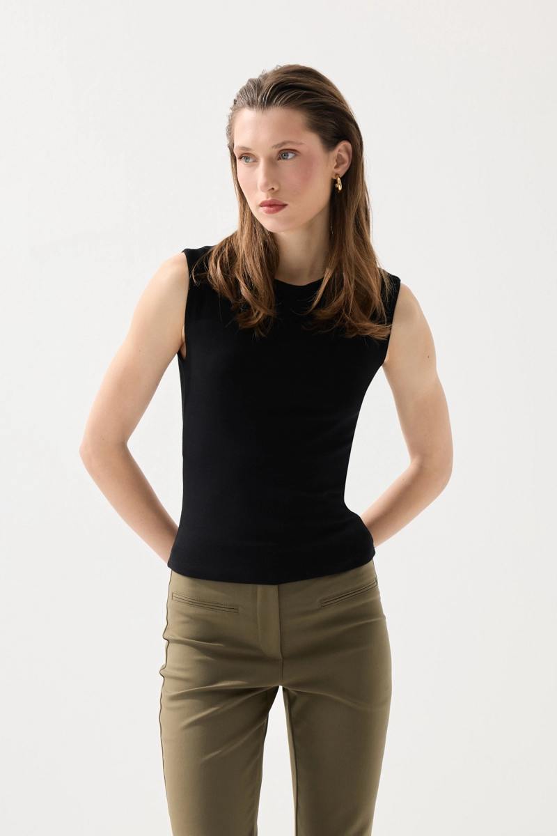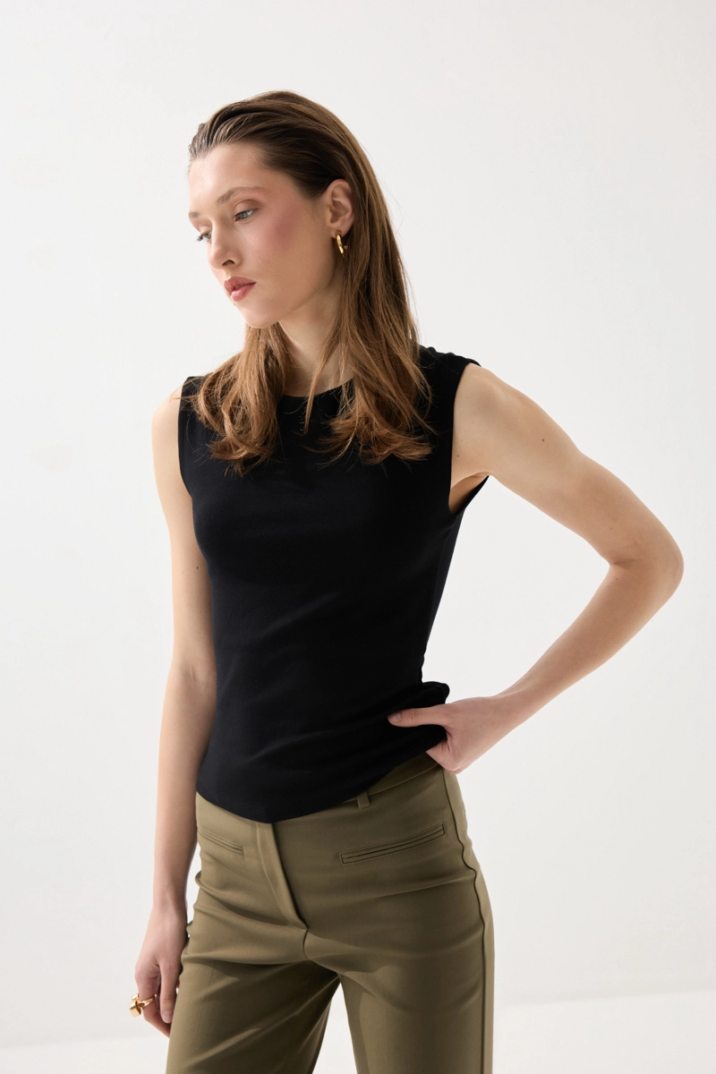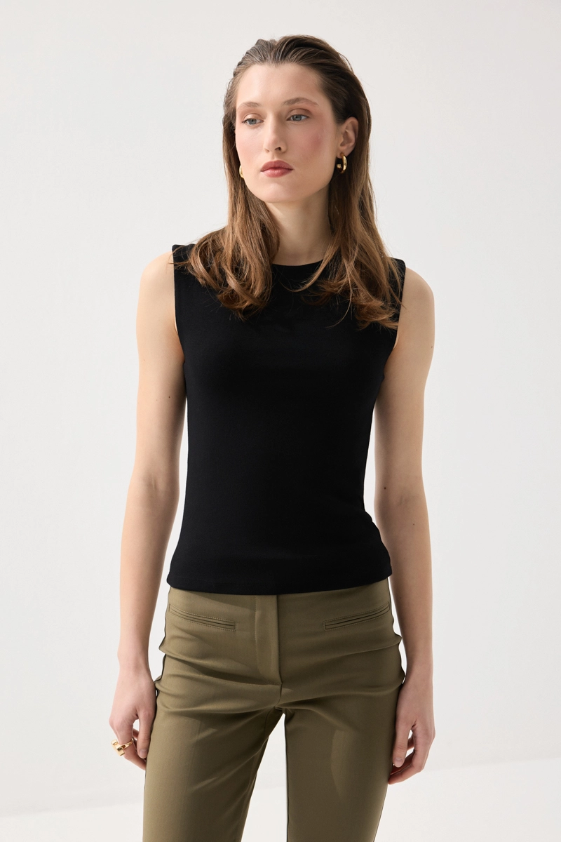 Yuvarlak Yaka Kolsuz Atlet - Siyah