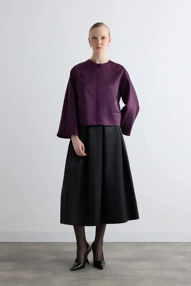 Yuvarlak Yaka Tafta Ceket ve Tafta Midi Etek