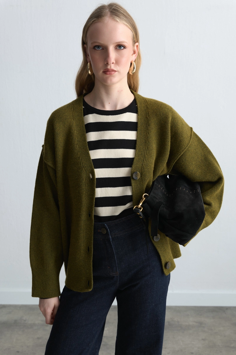 Siyah süet dokusu ve şık zımba detaylarıyla dikkat çeken bu çanta, modern ve güçlü bir stil yansıtır. Hem günlük hem de akşam kombinlerinde rahatlıkla kullanılabilir. Orta boy tasarımıyla hem şık hem de işlevseldir.