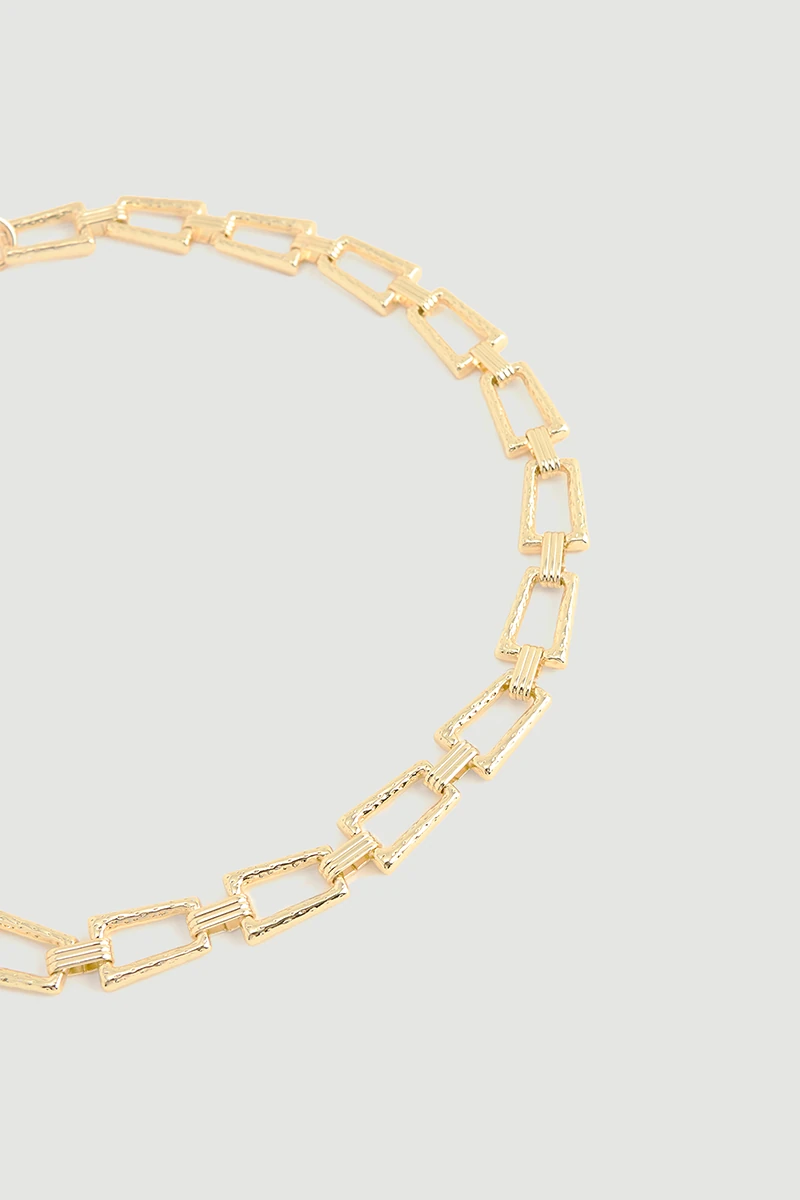 Zincir tasarımı modern ve dikkat çekici bir stil yaratıyor. Gold rengi sofistike ve şık bir görünüm sunuyor. Günlük ve akşam kombinlerinde stilin odak noktası oluyor. Minimal detaylarla zarif bir etki sağlıyor. Hafif yapısı rahat kullanım sunuyor. Her kombine uyum sağlayan şık bir aksesuar sunuyor.